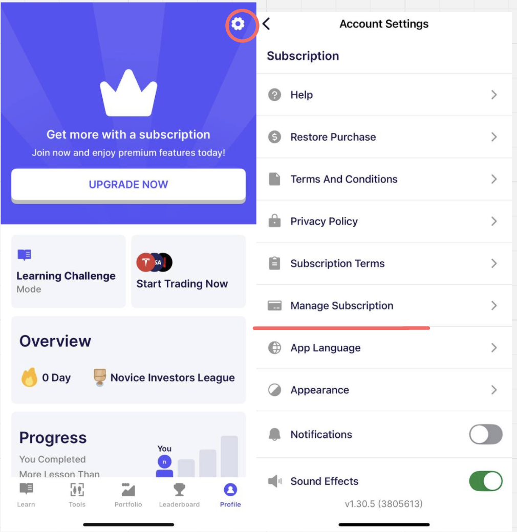 Note: If you subscribed through our website and then downloaded the app from the App Store, follow the same instructions: Finelo Profile → Settings → Subscription → Cancel Subscription.